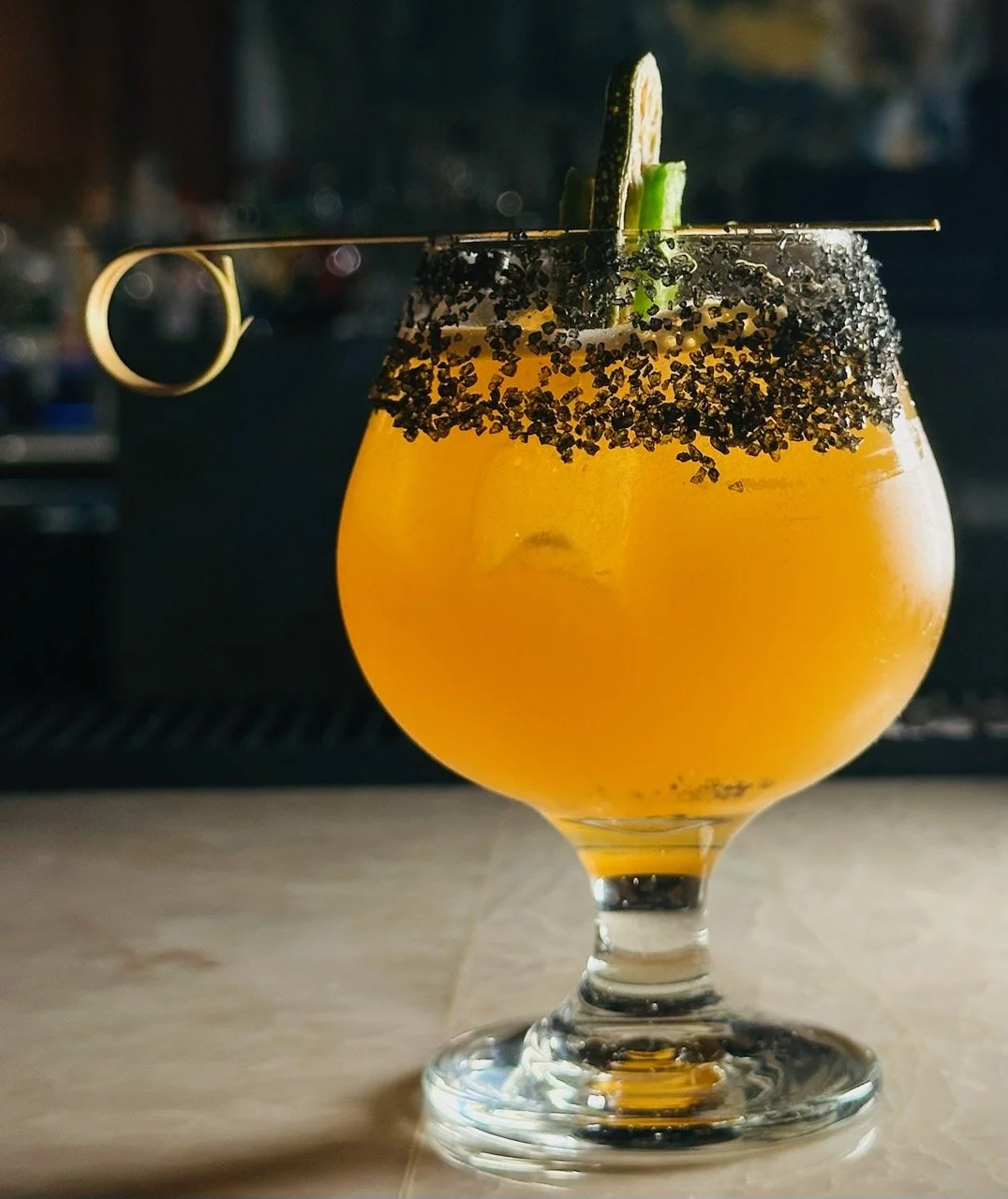 puro potro blanco tequila, amaras mexcal, aperol, honey, lime, jalapeno